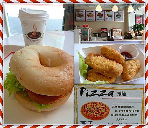 這對夫妻專程到國外學習貝果製作,自行研發了十多種口味,貝果是店家的主力產品,也有不少人團購。除了將貝果研發成獨特的貝果漢堡外,還有米捲和披薩等多種美味的速食。
