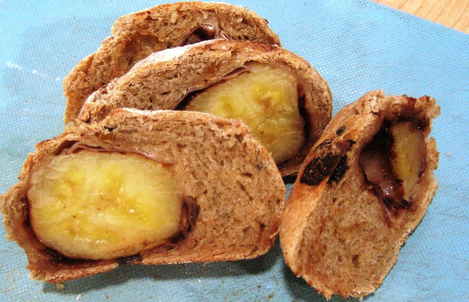 利用香蕉培養製成酵素後在用香蕉酵素液培養香蕉種老麵,再用香蕉液態酵母菌的中種發酵所製成的麵包,內餡為香蕉切塊後用餛吞皮抹巧克力醬後包裹香蕉後在包入香蕉種麵團所製成的成品,貨真價實完全百分百的天然酵母手感麵包
