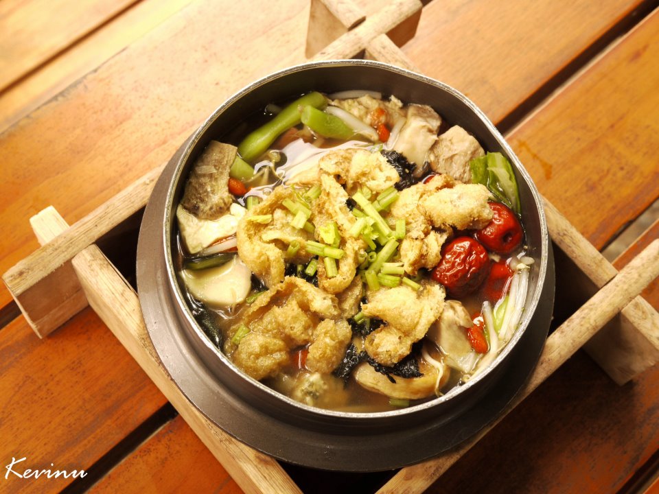 台北奧萬大 提供的餐點有小火鍋、焗烤套餐或是下午茶, 通通都是蔬食套餐(奶蛋素) 部分餐點可去蛋 圖: 藥膳小火鍋。