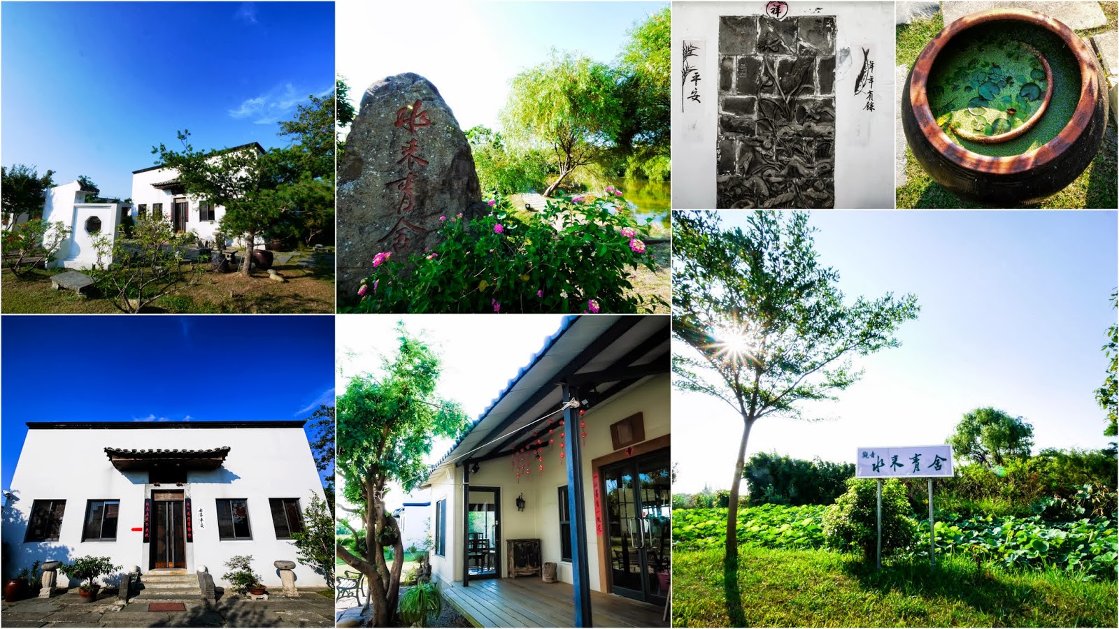 沿著水塘小徑走入竹林前的這座門樓,是山西省境內清朝咸 豐年間大戶人家的門宅。主建築是清朝嘉慶(約兩百多年) 安徽省黃山村落的小花廳(又稱官廳在古代是行政辦公室, 為地方集會所,後來也曾當作私塾使用)。典型徽派風格, 馬頭山牆,魚鱗灰瓦,留白的粉牆好映入竹影夕陽。室內全 以優質素淨的銀杏木為建材。主樑雕似弧月,蓮花淺草作邊 飾、大柱渾圓,簡約呵成。北方的門樓,江南的花廳,穿越 時空來到蓮花村、種種過程說的都是緣份。也與來者有緣. ..。這棟安徽古宅,現在卻完整地搬到臺灣,座落於觀音 鄉的「水來青舍」不僅經歷了二百五十年的時間考驗,主人 提倡的時蔬慢食風,更讓許多饕客們趨之若鶩。