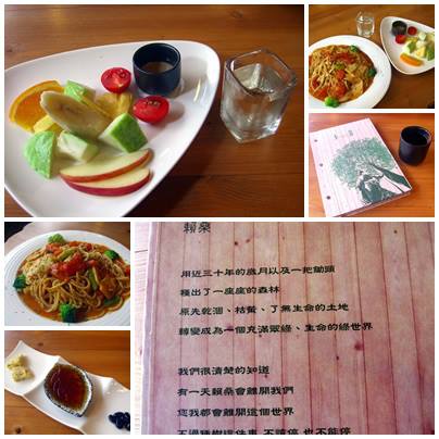 最近才從網路上知道台中有間雲道咖啡館,老闆經營理念很 特別,供應蔬食餐點的想法也很特別,與宗教也沒有關聯, 剛好上周末要去台中洲際棒球場看棒球,就決定中午先去雲 道咖啡廳用餐兼喝咖啡了,聽說雲道的紅醬料理不錯,所以 點了他們的阿里山特餐(紅醬義大利麵),生鮮番茄製做的 義大利麵不錯,水果沙拉也很新鮮,特別的是,沙拉醬有兩 種,其中一種是咖啡醬,很濃郁的咖啡香配上各式水果,好 吃又沒有違和感,飯後加點一杯特調的康寶藍,杯子很別致 ,口味層次分明,讓人驚艷,店家有名的咖啡應該是單品咖 啡,不過這次喝特調感覺很棒下次再來嘗試冰拿鐵。