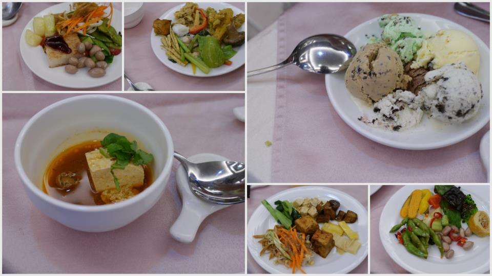 自助餐吧大約可分為幾個區塊,入門處是港式點心及現做麵食,麵食對面是甜點素糕區,再往後是沙拉水果區,熱食區,飲料區及湯品區。
