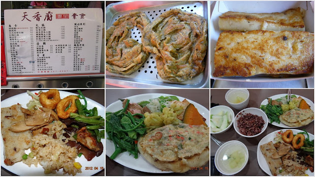 「天香廚養生素食」,店家週日也有營業,除了飯、麵、點心外,還有自助餐,菜色很豐富。香椿酪餅、蘿蔔糕,老闆娘現煎,這蘿蔔糕感覺蠻紮實。用餐的環境也蠻優的,兩人份的自助餐,大約120-140元左右。