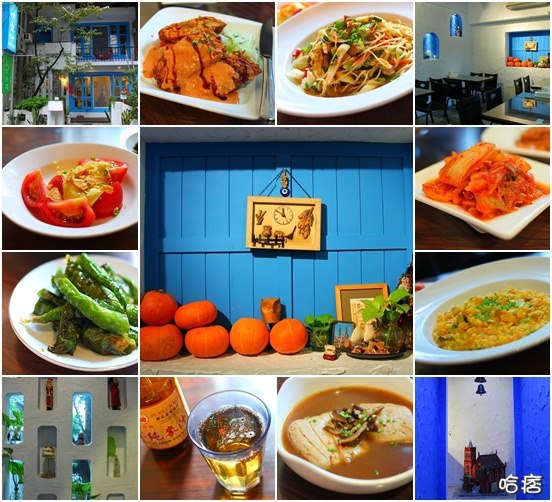 座落於永和永安市場捷運站附近,有一棟藍白相間,地中海建築風格的蔬食餐廳。快樂地是由一對韓國華僑兄妹檔聯手經營,哥哥負責掌廚,妹妹負責外場。快樂地原名薰衣草餐廳,開業八年多,哥哥的廚師資歷很深,一直以來都在料理葷食,近年更是興起賣素食的念頭。前年八月兄妹倆深受慈濟水懺演繹的影響,就在此因緣際會下,讓他們鼓起勇氣,在短短的一個月內,決定由葷轉素。