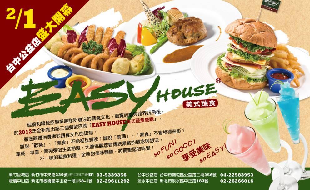 繼1/24小心上癮開幕後,2/1Easyhouse美式蔬食也加入服務素友們的行列囉〜