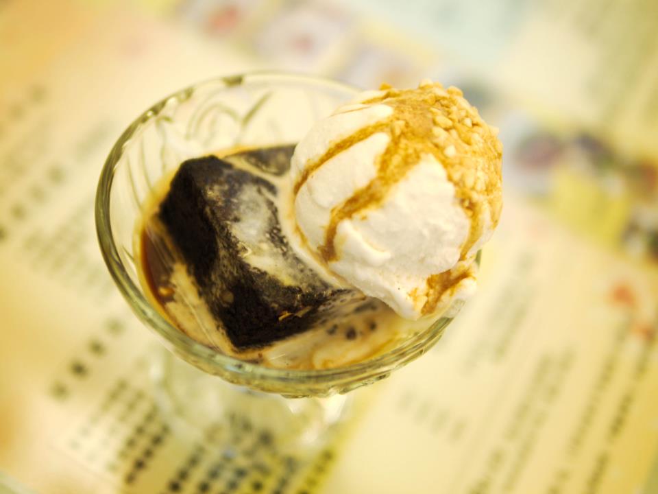 貓咪不吃魚 巧克力布朗尼 (熱咖啡+布朗尼+冰淇淋) 晚安~