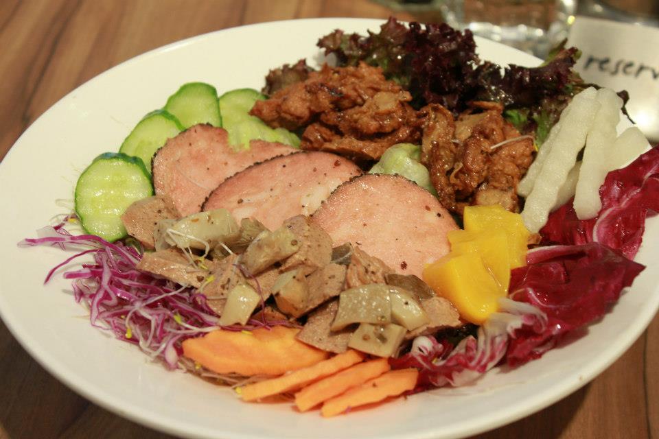 普羅旺斯沙拉,有南法普羅旺斯的香草,加上新鮮的生菜、蔬菜,及火腿、菲力牛、泰式雞肉— 在蔬食計劃 Plant Plan