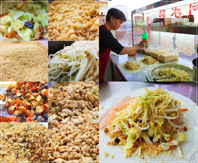 寬敞的門面擺著一個小攤專賣潤餅和菜包,其他空間都是備料工作區。店家的潤餅皮是當天手工現做,兼具皮薄軟Q的新鮮好口感。餡料有八種豐富的食材組合,其中以蛋酥最為特別,易出水的高麗菜和豆芽菜處理地恰到好處,完全不影響潤餅的口感。其中又以招牌湖南豆鼓辣椒更是人氣醬料,風味獨具是必吃指南。